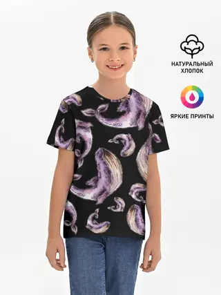 Детская базовая футболка / Лиловые киты