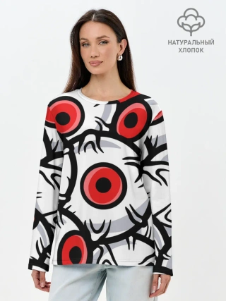 Лонгслив женский. Хлопок / ГЛАЗА ЗЛОДЕЯ | RED EYES