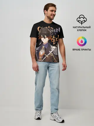Мужская базовая футболка / Чжун Ли, Genshin Impact