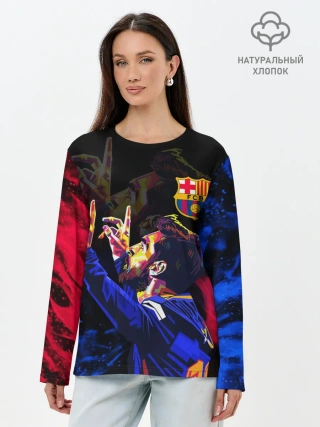 Лонгслив женский. Хлопок / ЛИОНЕЛЬ МЕССИ / ОГОНЬ / FIRE