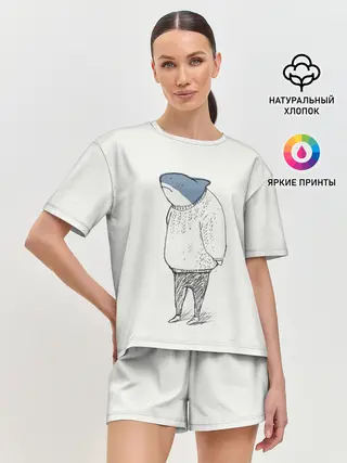 Женская пижама с шортами / акула в свитере