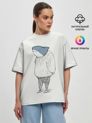 Женская футболка оверсайз / акула в свитере