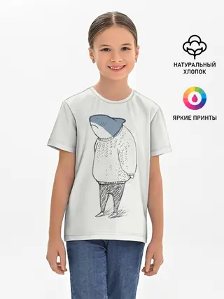 Детская базовая футболка / акула в свитере