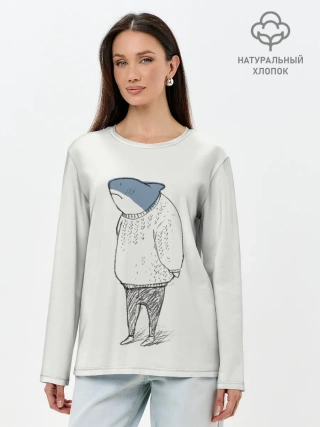 Лонгслив женский. Хлопок / акула в свитере