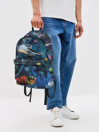 Рюкзак детский / Морской паттерн с крабами и водорослями