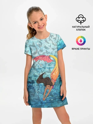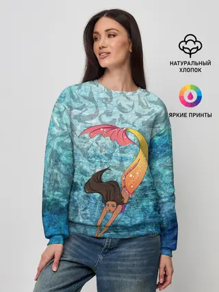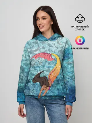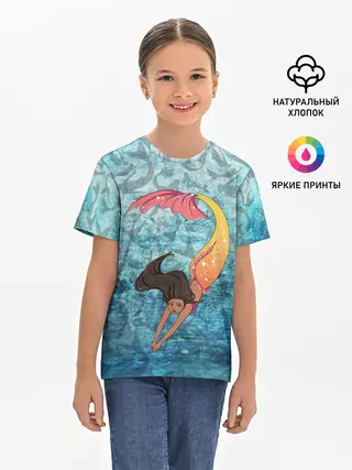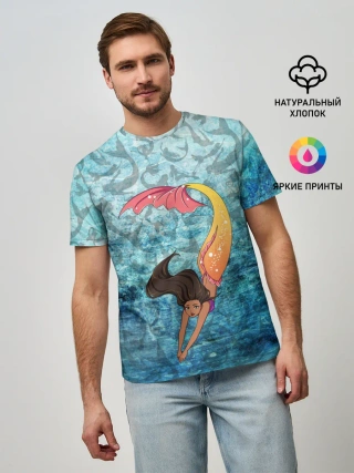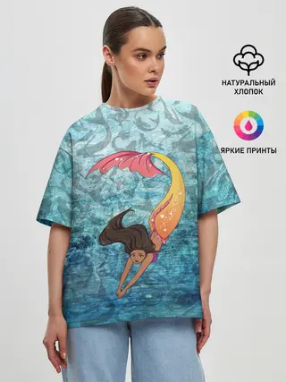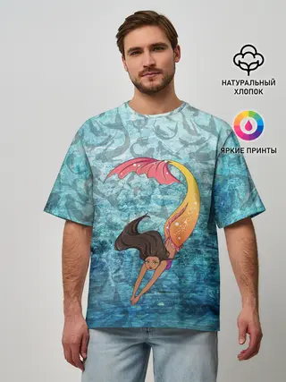 Мужская футболка оверсайз / Русалка | Подводный мир