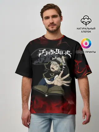 Мужская футболка оверсайз / Аста в огне Чёрный клевер