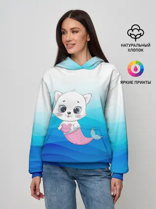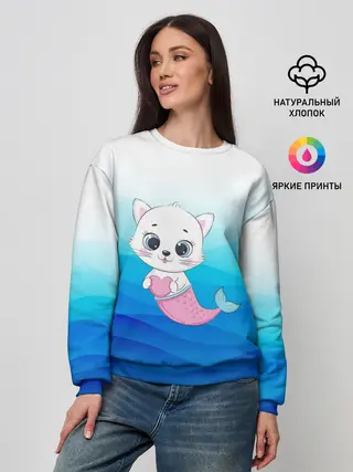 Женский свитшот / Котик русалочка | Русалка с сердечком
