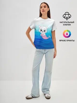 Женская базовая футболка / Котик русалочка | Русалка с сердечком