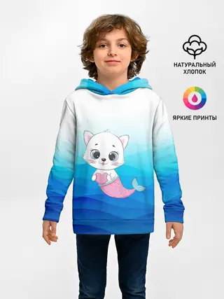Детский лонгслив / Котик русалочка | Русалка с сердечком