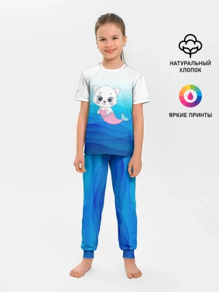 Детская пижама с брюками / Котик русалочка | Русалка с сердечком