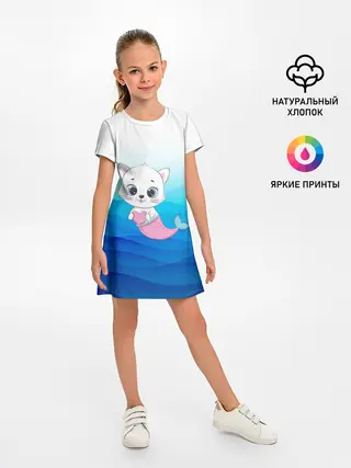 Детская пижама с шортами / Котик русалочка | Русалка с сердечком