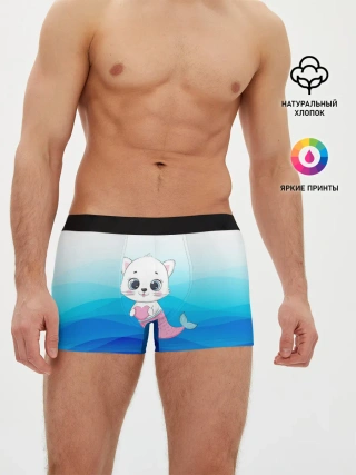 Мужские трусы боксеры / Котик русалочка | Русалка с сердечком