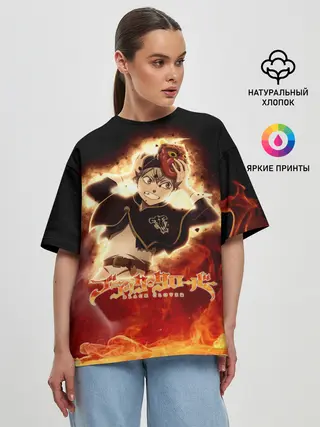 Женская футболка оверсайз / Аста в маске огонь и пламя