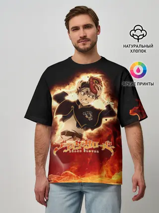 Мужская футболка оверсайз / Аста в маске огонь и пламя