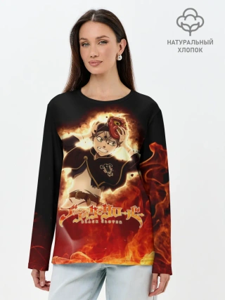 Лонгслив женский. Хлопок / Аста в маске огонь и пламя