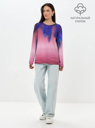 Лонгслив женский. Хлопок / Неоновые Тропики