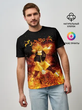 Мужская базовая футболка / Чёрный клевер Аста в огне