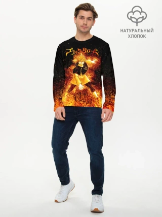 Мужской лонгслив базовый / Чёрный клевер Аста в огне