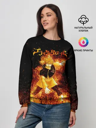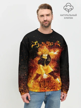Мужской свитшот базовый / Чёрный клевер Аста в огне