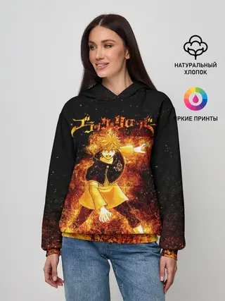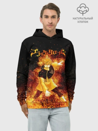 Худи мужской база хлопок / Чёрный клевер Аста в огне