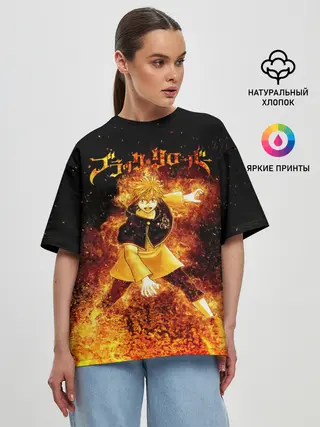 Женская футболка оверсайз / Чёрный клевер Аста в огне