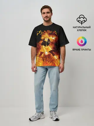 Мужская футболка оверсайз / Чёрный клевер Аста в огне