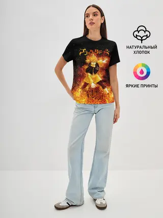 Женская базовая футболка / Чёрный клевер Аста в огне