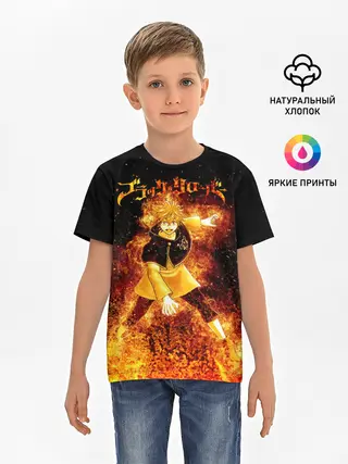 Детская базовая футболка / Чёрный клевер Аста в огне