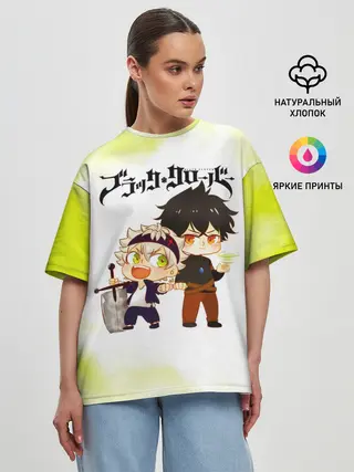 Женская футболка оверсайз / Аста и Юно Чёрный клевер