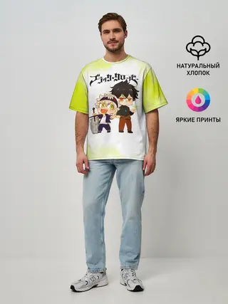 Мужская футболка оверсайз / Аста и Юно Чёрный клевер