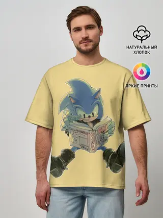 Мужская футболка оверсайз / Соник с книжкой