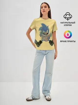 Женская базовая футболка / Соник с книжкой