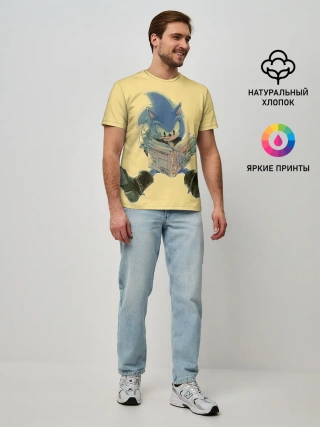 Мужская базовая футболка / Соник с книжкой