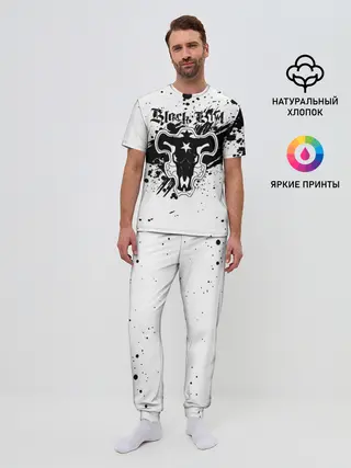 Мужская пижама с брюками / Черные быки брызги Чёрный клевер
