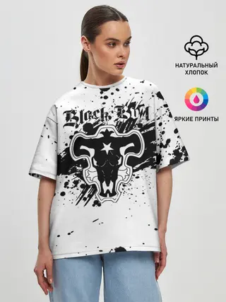 Женская футболка оверсайз / Черные быки брызги Чёрный клевер