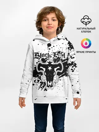 Детское худи / Черные быки брызги Чёрный клевер