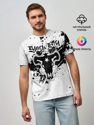 Мужская базовая футболка / Черные быки брызги Чёрный клевер
