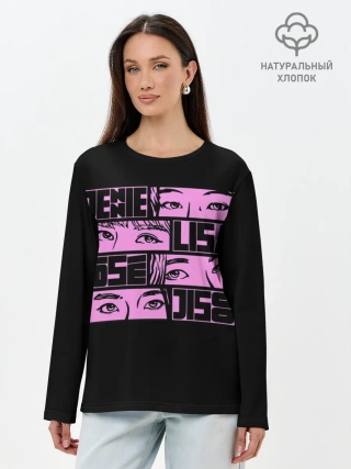 Лонгслив женский. Хлопок / Black pink eyes