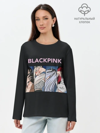 Лонгслив женский. Хлопок / Hide eyes | Blackpink