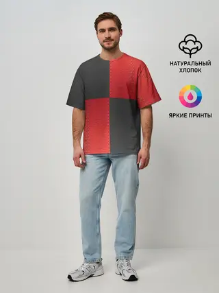 Мужская футболка оверсайз / Черно-красная Кожа