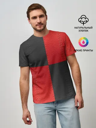 Мужская базовая футболка / Черно-красная Кожа