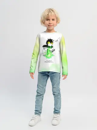 Детский лонгслив / Чёрный клевер Юно кислотный