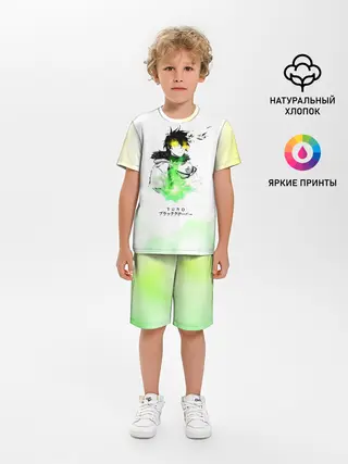 Детская пижама с шортами / Чёрный клевер Юно кислотный