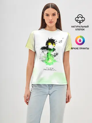 Женская базовая футболка / Чёрный клевер Юно кислотный