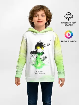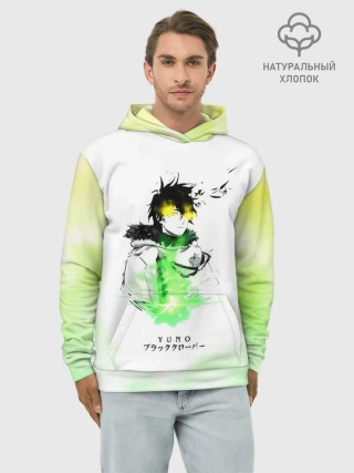 Худи мужской база хлопок / Чёрный клевер Юно кислотный
