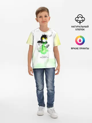 Детская базовая футболка / Чёрный клевер Юно кислотный