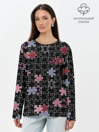 Лонгслив женский. Хлопок / Пазлы Винтажный стиль