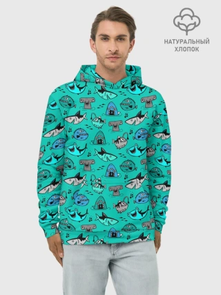 Худи мужской база хлопок / Морские рыбки