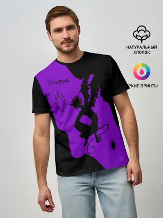 Мужская футболка оверсайз / Чёрный клевер демон в сиреневом